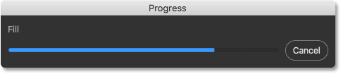 برای انجام برش ، کلید (Enter (Win) / Return (Mac را روی صفحه کلید فشار می دهیم. این بار چون فتوشاپ چیزهای زیادی برای کشف دارد ، مانند گذشته نتایج کار را فوری تحویل نمی دهد. درعوض ، یک نوار پیشرفت مشاهده خواهیم کرد که به ما می گوید میزان پیشرفت کار فتوشاپ چقدر است: