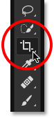 حال می خواهیم که فضای بیشتری را در بالای بادکنک ها در قسمت بالای تصویر اضافه کنیم. برای انجام این کار ، یک بار دیگر ابزار Crop را از نوار ابزار انتخاب می کنیم: