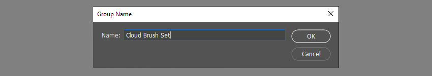 اگر می خواهید مجموعه قلم موهای ابری خود را ایجاد کنید ، پنل Brushes را باز کرده و روی آیکون Create a New Group کلیک کنید. آن را نامگذاری کنید: