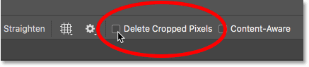 به نوار تنظیمات (Options Bar) بروید و مطمئن شوید که گزینه Delete Cropped Pixels خاموش است (تیک نخورده باشد). با این کار، تغییرات بصورت ثابت و دائمی نخواهند بود: